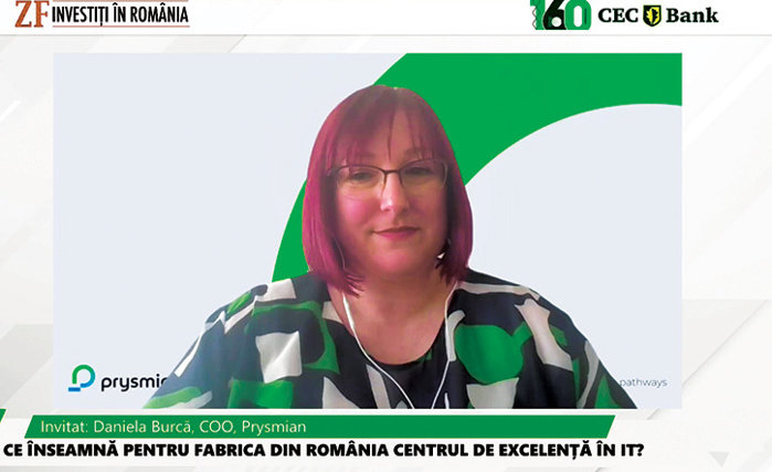 ZF Investiţi în România! Daniela Burcă, COO la Prysmian: Investim în creşterea producţiei la Slatina, dar şi în cercetare-dezvoltare şi într-un centru de IT în România. „Avem peste 50 de posturi deschise pe partea de IT şi vrem să ne atragem colegi aici.“