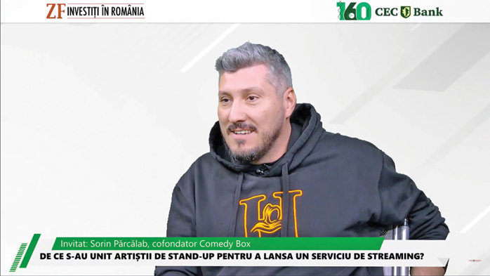 ZF Investiţi în România! Un proiect ZF şi CEC Bank. 16 artişti de stand-up comedy au lansat în decembrie serviciul românesc de streaming Comedy Box. Sorin Pârcălab, cofondator: Dacă ajungem la circa 20.000 de utilizatori, vom fi pe break-even. Platforma Comedy Box a fost lansată în decembrie 2023 şi cuprinde producţii de comedie, emisiuni şi podcasturi