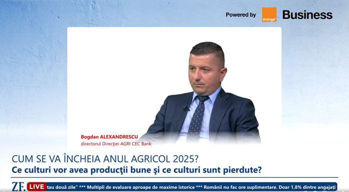ZF Live. Bogdan Alexandrescu, CEC Bank: Băncile şi IFN-urile au ajuns la o expunere de 50 mld. lei pe agricultură, iar în 2025 ne aşteptăm la menţinere. Fermierii sunt precauţi şi nu-şi asumă singuri investiţii majore: fac investiţii doar cu bani europeni sau de la stat
