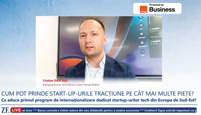 ZF Live. Cristian Dascălu, managing partner, Techcelerator, expert, Startup Reaktor: Noi cei din Estul Europei suntem mai temători, mergem poate de la Bucureşti la Cluj, dar am putea să luăm avionul şi să mergem la Paris, la Madrid sau Londra pentru a întelege şi mai multe lucruri.