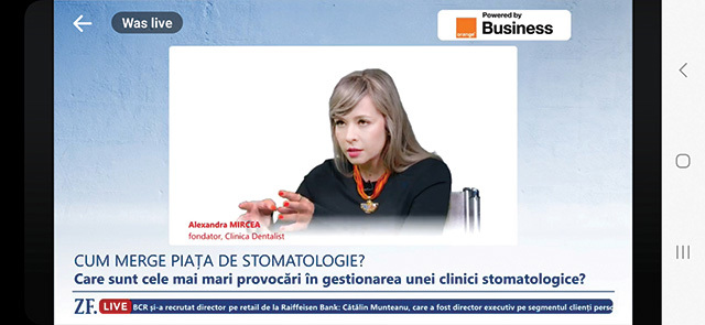 ZF Live: Cum merge piaţa de stomatologie? Alexandra Mircea, fondatoarea Clinicii Dentalist: Am început cu o investiţie de 250.000 euro, dar în doi ani de zile am ajuns la 2 mil. de euro. Am investit în noi unituri şi dotări