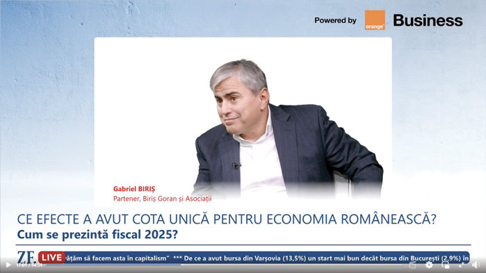 ZF Live. Gabriel Biriş, partener la Biriş, Goran şi Asociaţii Trebuie să ţinem cu dinţii de cota unică: costurile administrative au scăzut şi încasările la buget au crescut. Este un detaliu: costurile de administrare au scăzut foarte mult cu cota unică