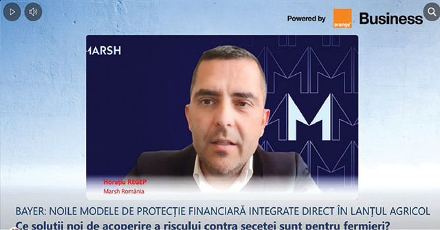 ZF Live. Horaţiu Regep, Marsh România. Bayer şi Marsh România au făcut un parteneriat prin care asigurarea porumbului împotriva secetei este inclusă în preţul seminţei şi câteva sute de mii de hectare sunt protejate în 2026