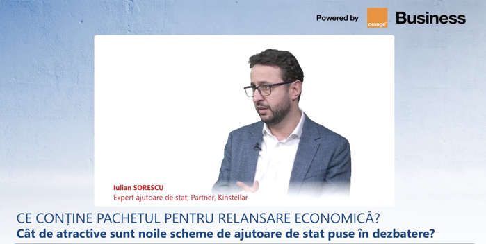 ZF Live. Iulian Sorescu, partner, Kinstellar: În pachetul de măsuri pentru relansarea economică este şi o schemă de ajutor de stat pentru investiţii strategice şi de valoare mare care va premia investiţiile de peste 1 mld. lei şi va încerca să atragă investiţiile mari