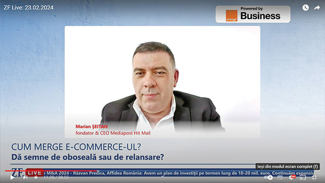 ZF Live. Marian Şeitan, fondator & CEO Mediapost Hit Mail: Comerţul online se va dubla în zece ani în România, este loc de creştere, dar firmele mici trebuie să se nişeze ca să reziste