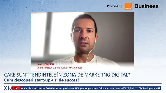 ZF Live. Radu Ionescu, angel investor, start-up advisor, Rock Climber: Am avut câteva investiţii directe şi în start-up-uri din România, dar mă uit în special după cele care au o viziune mai largă şi care vizează pieţe mari