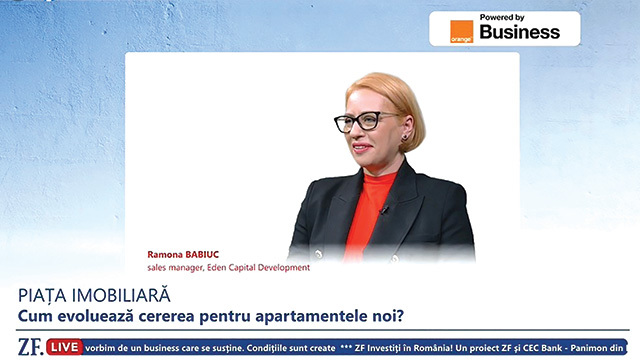ZF Live. Ramona Babiuc, sales manager, Eden Capital Development: Anul acesta vom finaliza ultima fază a proiectului Cortina North, un complex de 1.500 de apartamente din Pipera. Următoarele dezvoltări vor fi tot în zona de nord, dar şi în vest, în sectorul 6