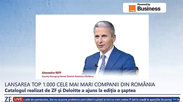 ZF Live Special. Alexandru Reff, country managing partner Deloitte România şi Moldova: În ultimii şapte ani cifra de afaceri cumulată a celor mai mari 1.000 de companii din România a crescut cu peste 100 de procente. Rezilienţa dobândită în pandemie ne ajută să traversăm contexte grele cu rezultate atât de bune