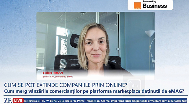 ZF Live. Stejara Pircan, senior VP commercial, eMAG: Ecosistemul marketplace generează peste 60% din unităţile vândute de eMAG, iar obiectivul este să ajungem la 75% din total. În valoare, marketplace-ul depăşeşte 40% şi vrem să ajungem la 60%