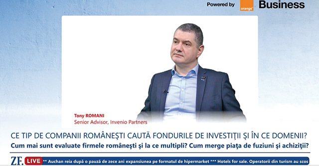 ZF Live. Tony Romani, Invenio Partners, un fond de investiţii regional, care a preluat, împreună cu fondul ACP din Polonia, 60% din reţeaua 5 to go: Businessul 5 to go poate creşte de trei ori faţă de unde este azi. În patru ani, încercăm să ajungem acolo
