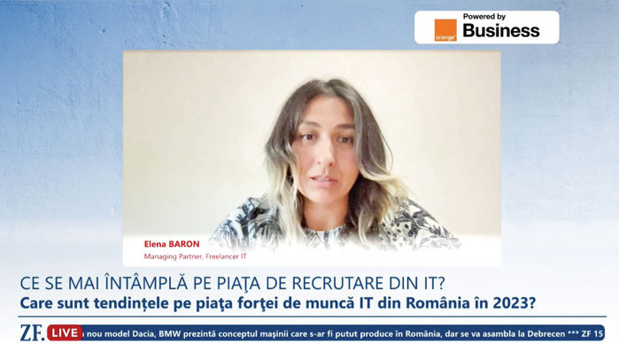„Înainte poate din două interviuri de HR reuşeam poate să trimitem chiar ambele persoane. Acum poate că trebuie să avem trei sau patru interviuri, să putem să ne aliniem şi să trimitem mai departe un profil care să întrunească toate cerinţele companiei. Şi aici bineînţeles că intervine şi zona salarială. Omul poate să fie extrem de bun dacă există un range salarial care se închide la 4.000 euro şi candidatul îşi doreşte 5000, este clar că discuţia se închide” a declarat Elena Baron, Managing Partner, Freelancer IT, în cadrul emisiunii ZF Live organizată cu sprijinul Orange Business.