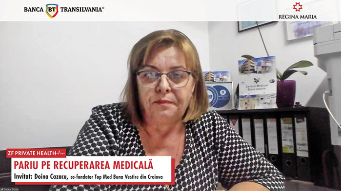 ZF Private Health. Doina Cazacu, Top Med Buna Vestire din Craiova: Vrem să creştem numărul de paturi din contract cu Casa de Sănătate, acum avem toate locurile ocupate pentru următoarele şase luni. Adresabilitatea a crescut foarte mult
