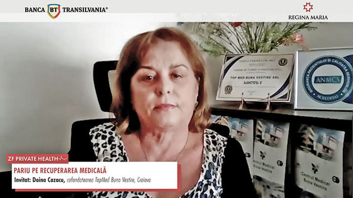 ZF Private Health. Doina Cazacu, Top Med din Craiova: „Cererea pentru recuperare medicală este în creştere, vedem tot mai mulţi copii şi tineri care vin la tratament cu probleme la spate din cauza poziţiei greşite de la calculator sau în urma unor accidente“