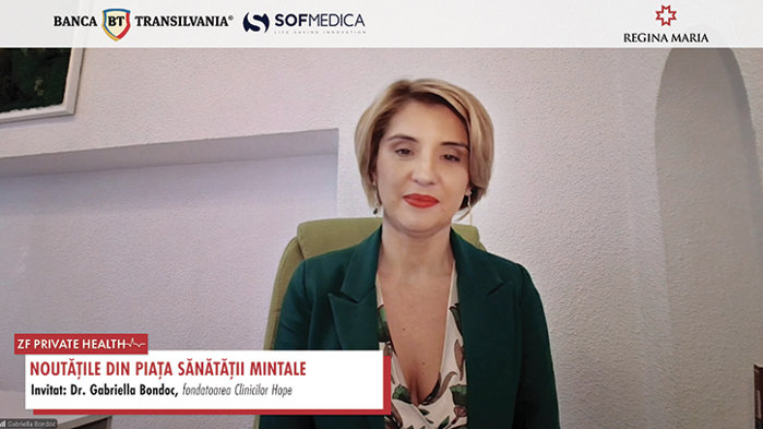 ZF Private Health. Gabriella Bondoc, fondatoarea clinicilor Hope: Companiile pierd anual între 1,6% şi 5% din cifra de afaceri din cauza problemelor de sănătate emoţională ale angajaţilor. Cifra de afaceri a clinicilor Hope va depăşi 4 mil. euro la finalul anului 2025